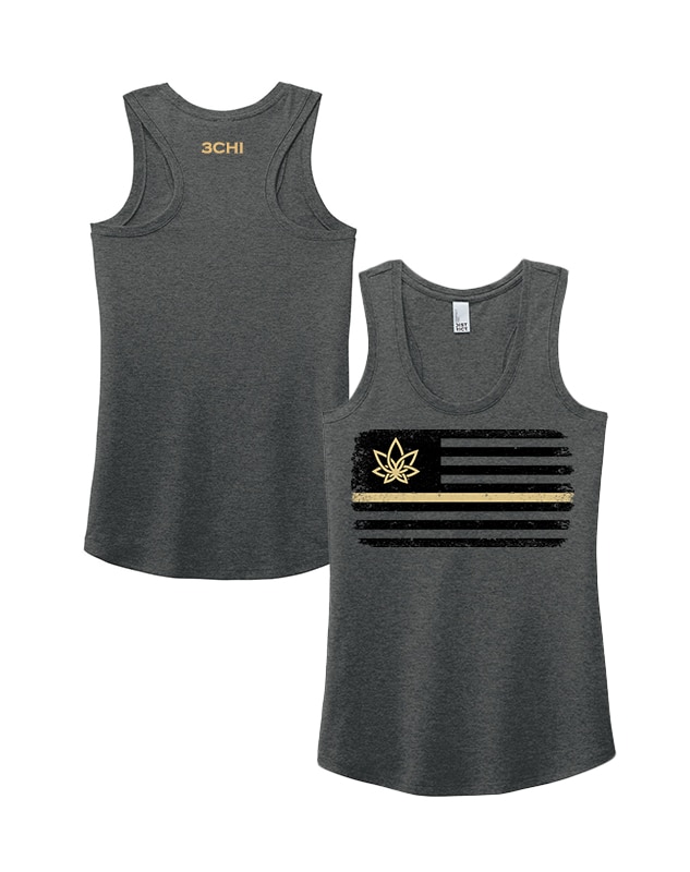 3CHI Tank Top – Canna-Fan Women’s Racerback Distressed Flag
